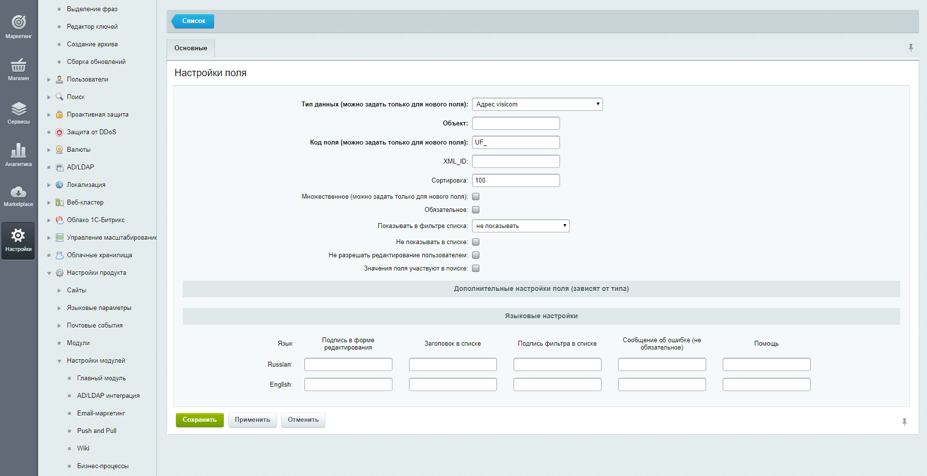 «Модуль Візіком» - дозволяє створити користувацький тип «Адрес visicom» для CRM Компаній і Контактів Бітрікс24, де буде зберігатись інформація про адресу, який користувач зможе отримати через сервіс https://visicom.ua/. Щоб використовувати сервіс, потрібно буде отримати API KEY, а також на сервері повинен бути встановлений модуль CUrl.