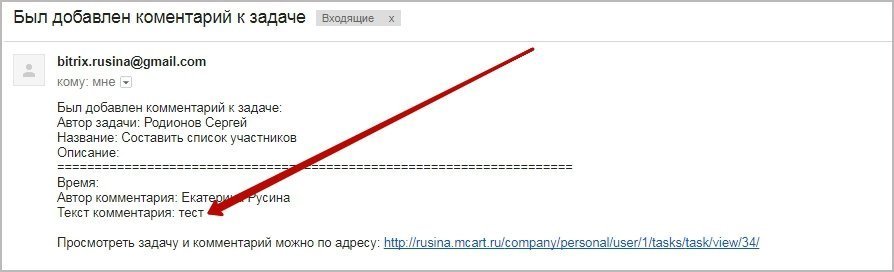 Каждому сотруднику, участвующему в задаче, также придет уведомление на электронную почту о добавлении комментария.